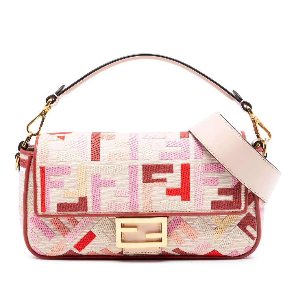 Fendi Zucca Embroidered Canvas Baguette Satchel Pink Medium