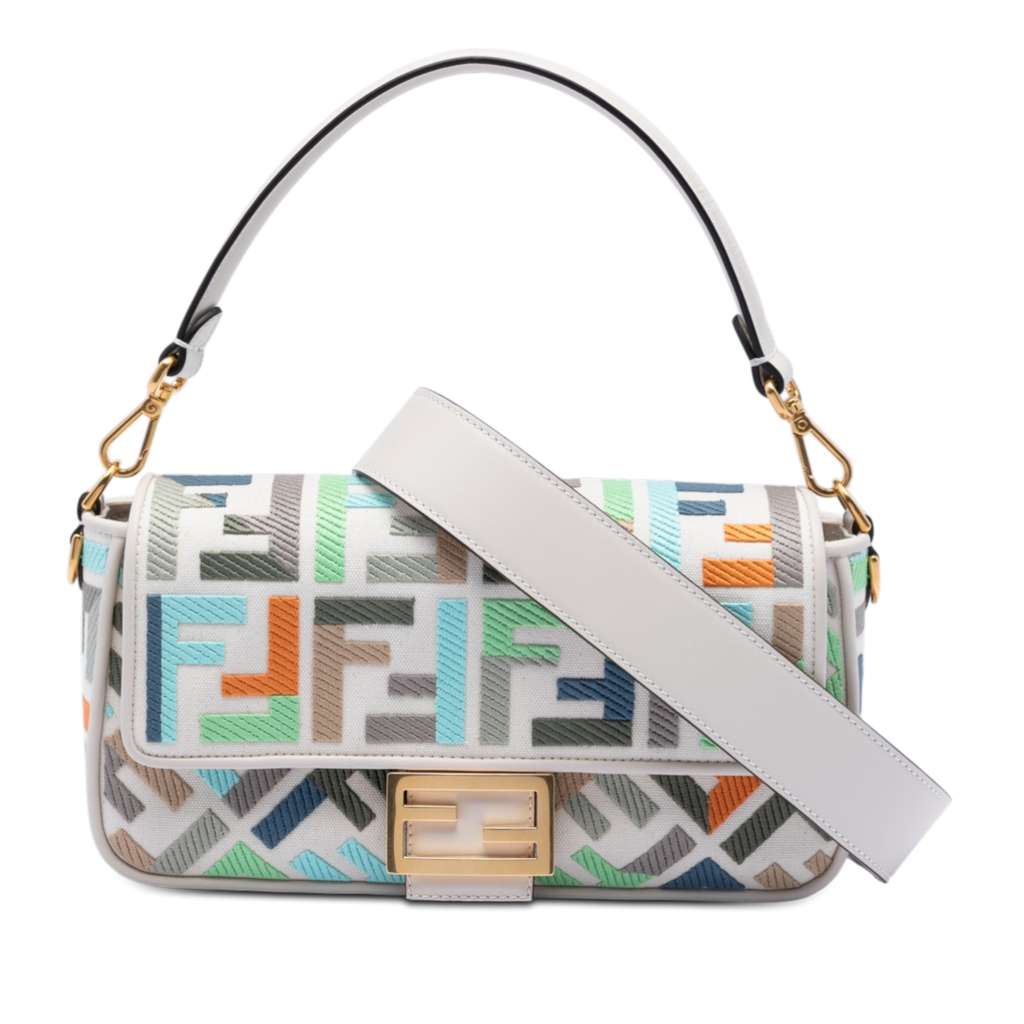 Fendi Zucca Embroidered Canvas Baguette Satchel White Medium