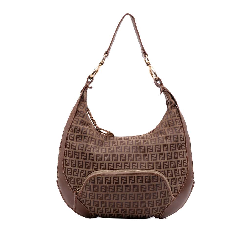 Fendi Zucchino Canvas Chef Pocket Hobo Brown Large Canvas