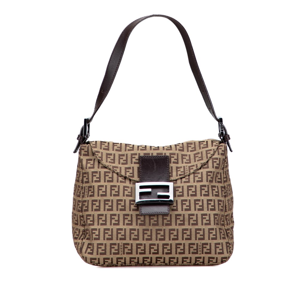 This shoulder bag features a canvas body, a flat leather strap, a top flap with flat leather strap and magnetic snap button closure, and an interior zip pocket.