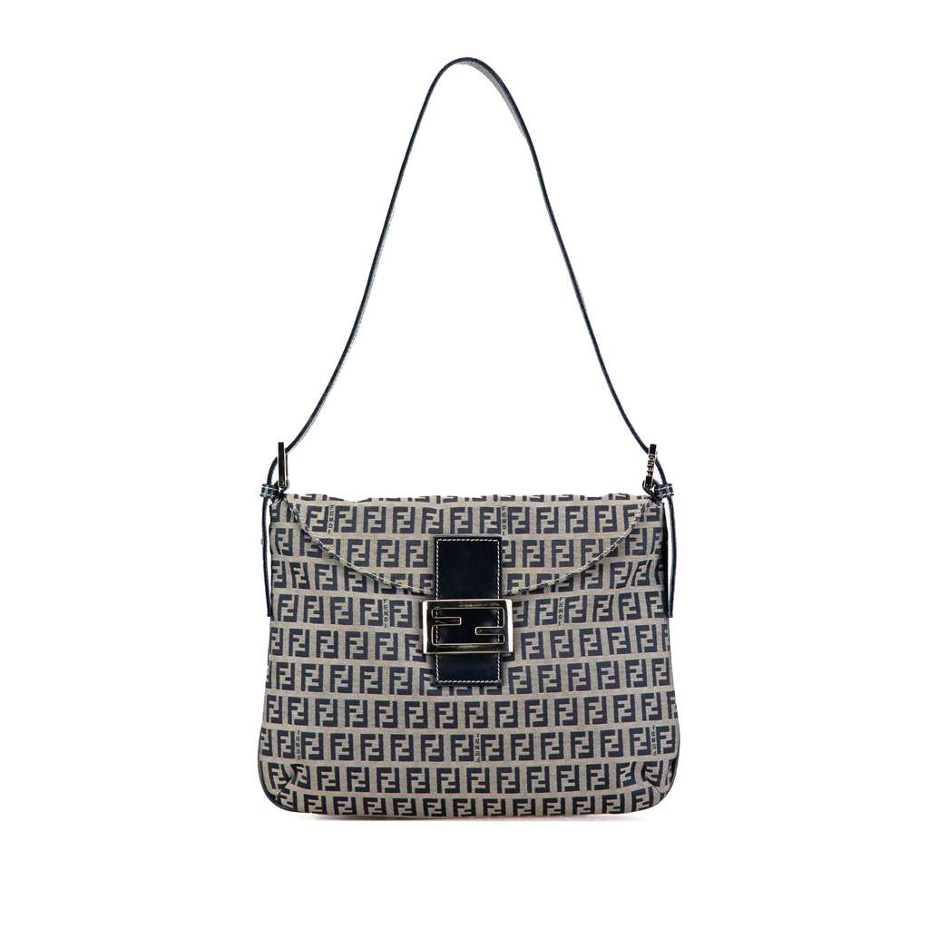 Fendi Zucchino Canvas Double Flap Shoulder Bag Grey Medium C