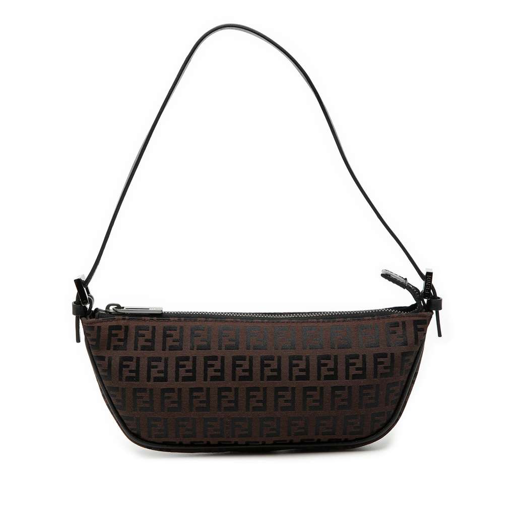 Fendi Zucchino Canvas Half Moon Pochette Brown Mini Canvas