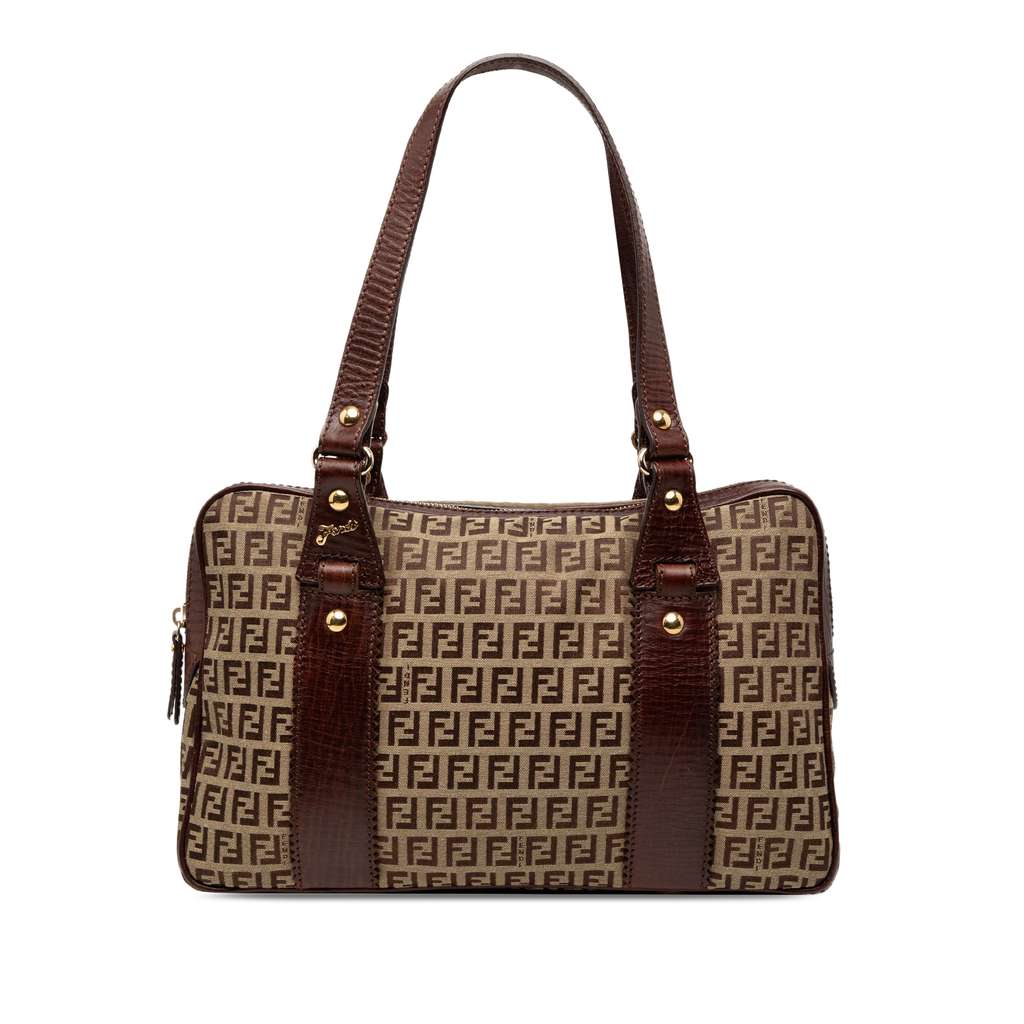 Fendi Zucchino Canvas Shoulder Bag Brown Large Canvas
