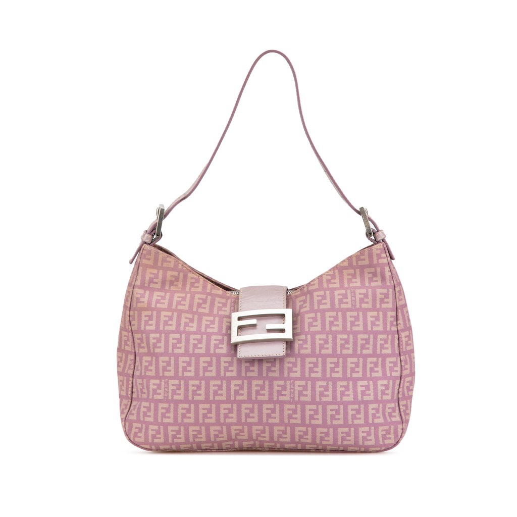 This shoulder bag features a canvas body, a flat leather strap, a top strap with magnetic snap closure, and an interior zip pocket.