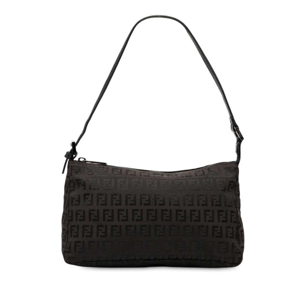 This shoulder bag features a canvas body, flat leather strap, a top zip closure, and an interior zip pocket.