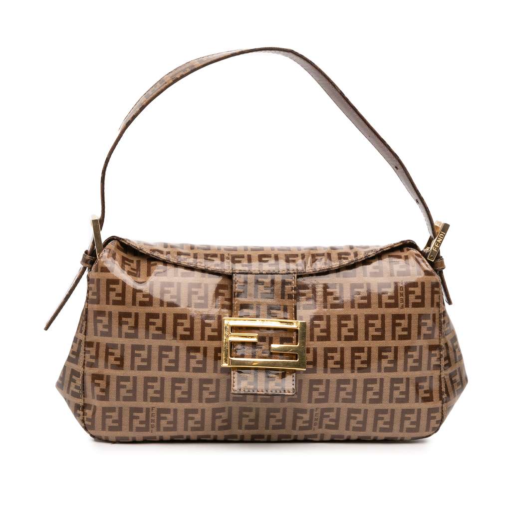 This shoulder bag features a coated canvas body, a flat strap, double flaps with magnetic snap closure, and an interior zip pocket.