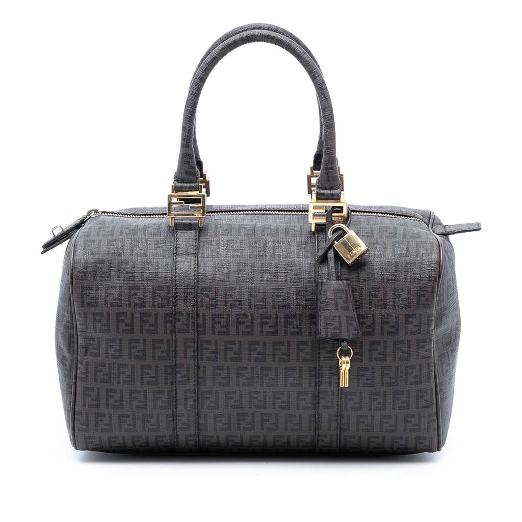 Fendi Zucchino Spalmati Forever Bauletto Boston Bag Brown La