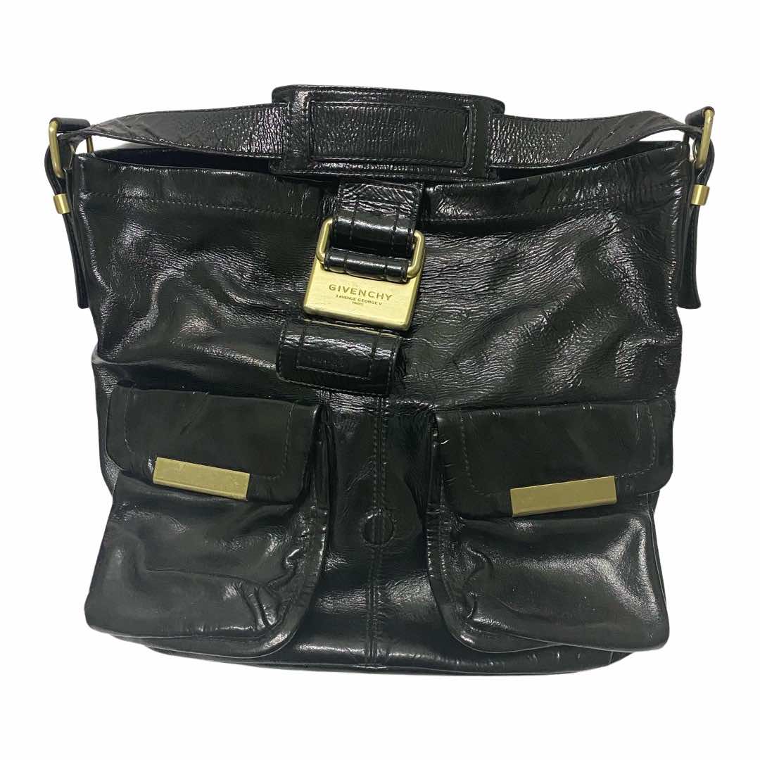 Givenchy black patent leather double pocket shoulder bag