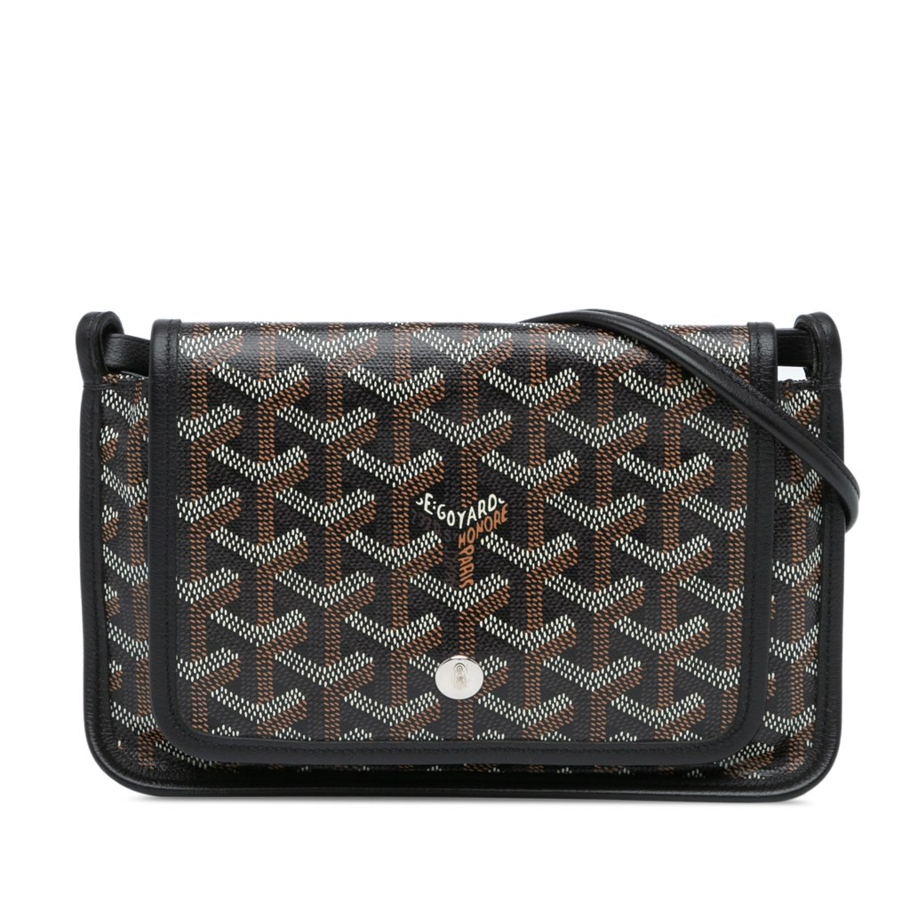 The Plumet features a coated canvas body, rolled leather strap, a front flap with snap closure, and an interior zip compartment.