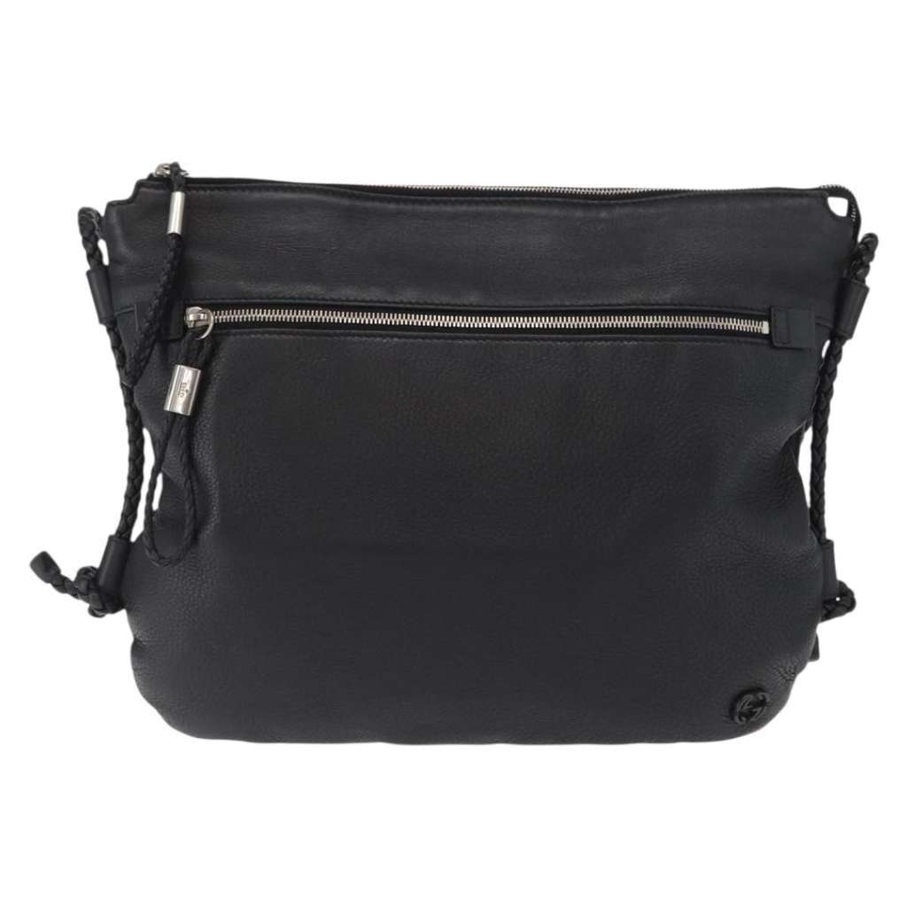 Gucci Braided Strap Zip Messenger Black X-Large Leather