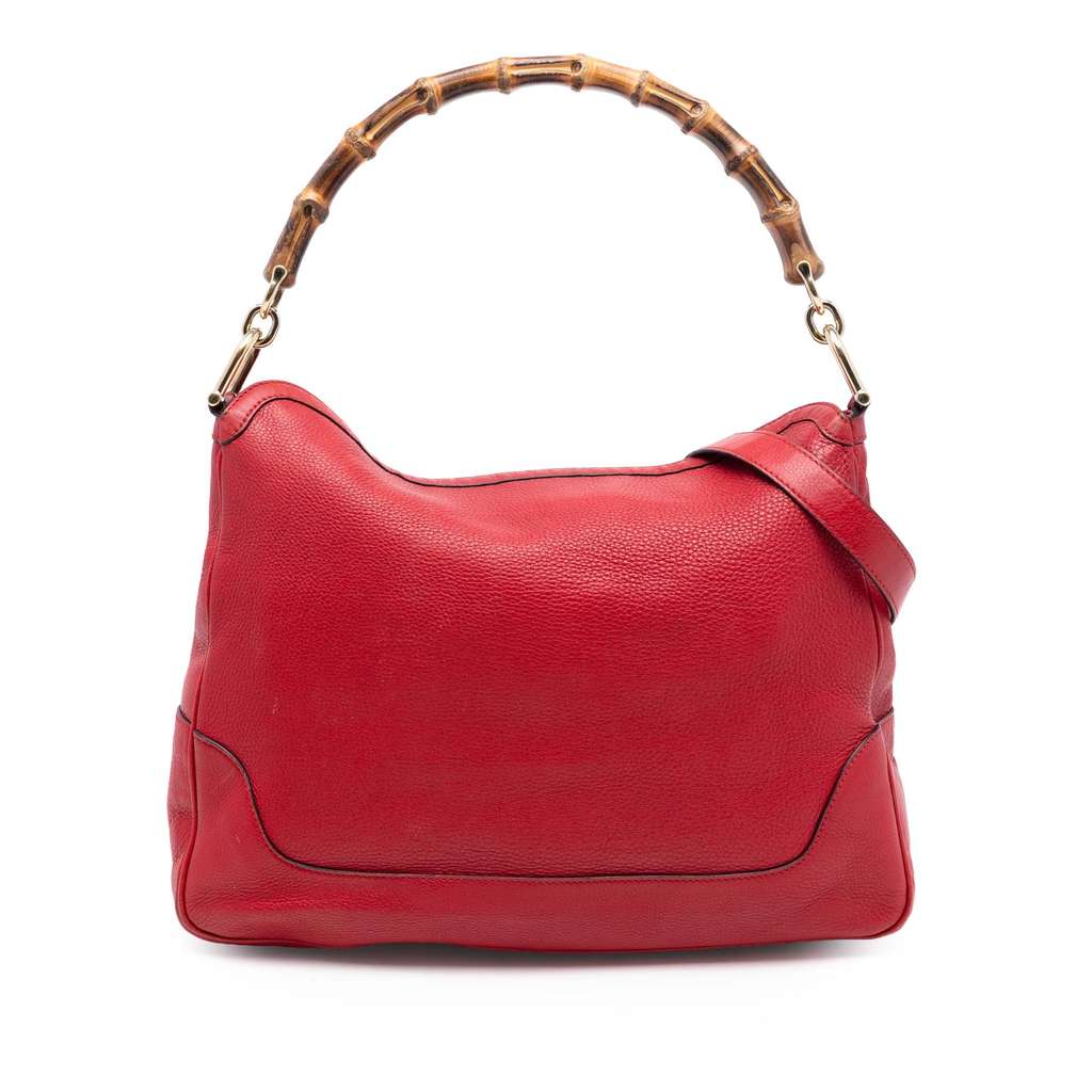 Gucci Calfskin Bamboo Diana Satchel Red X-Large Leather