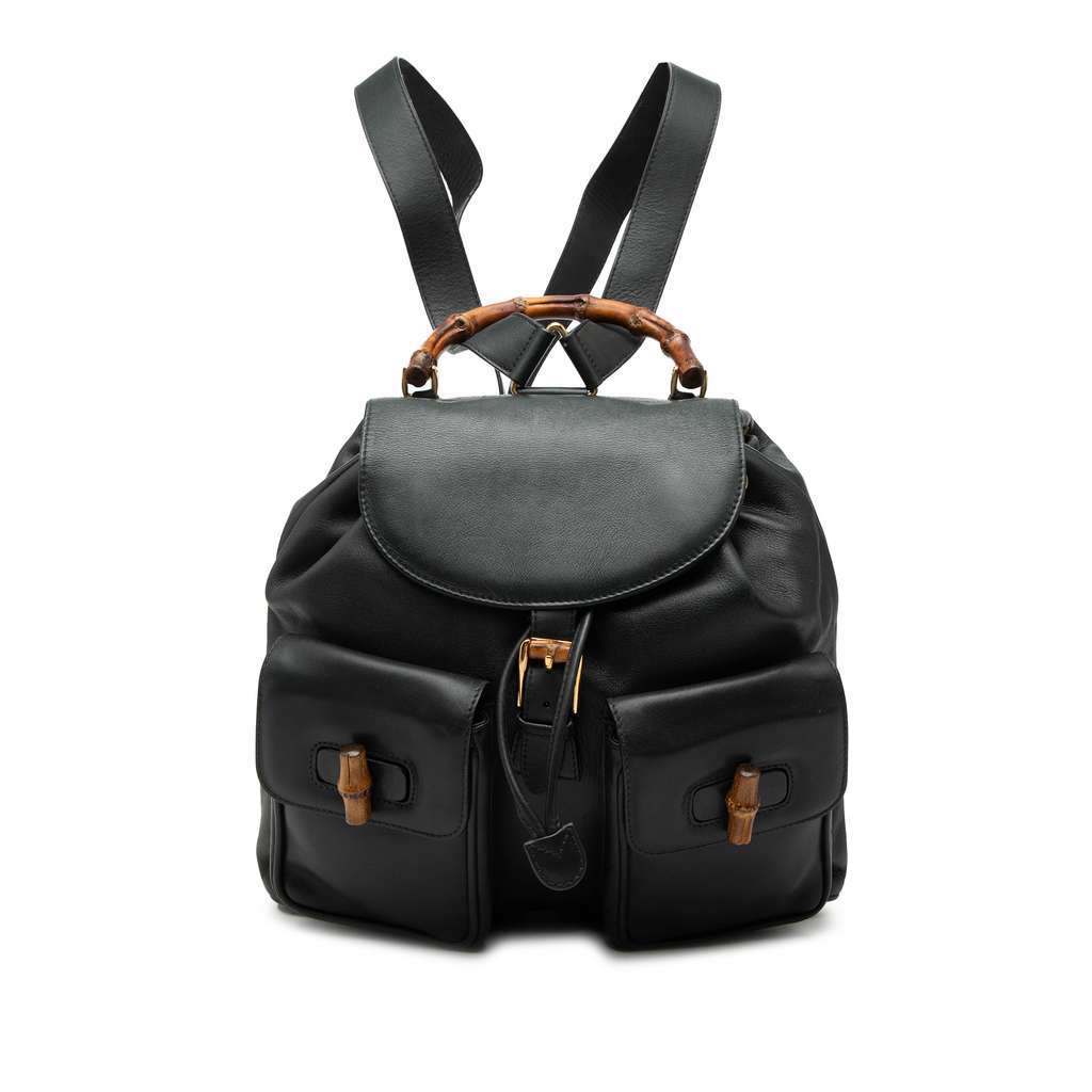 Gucci Calfskin Bamboo Drawstring Backpack Black Large Leathe