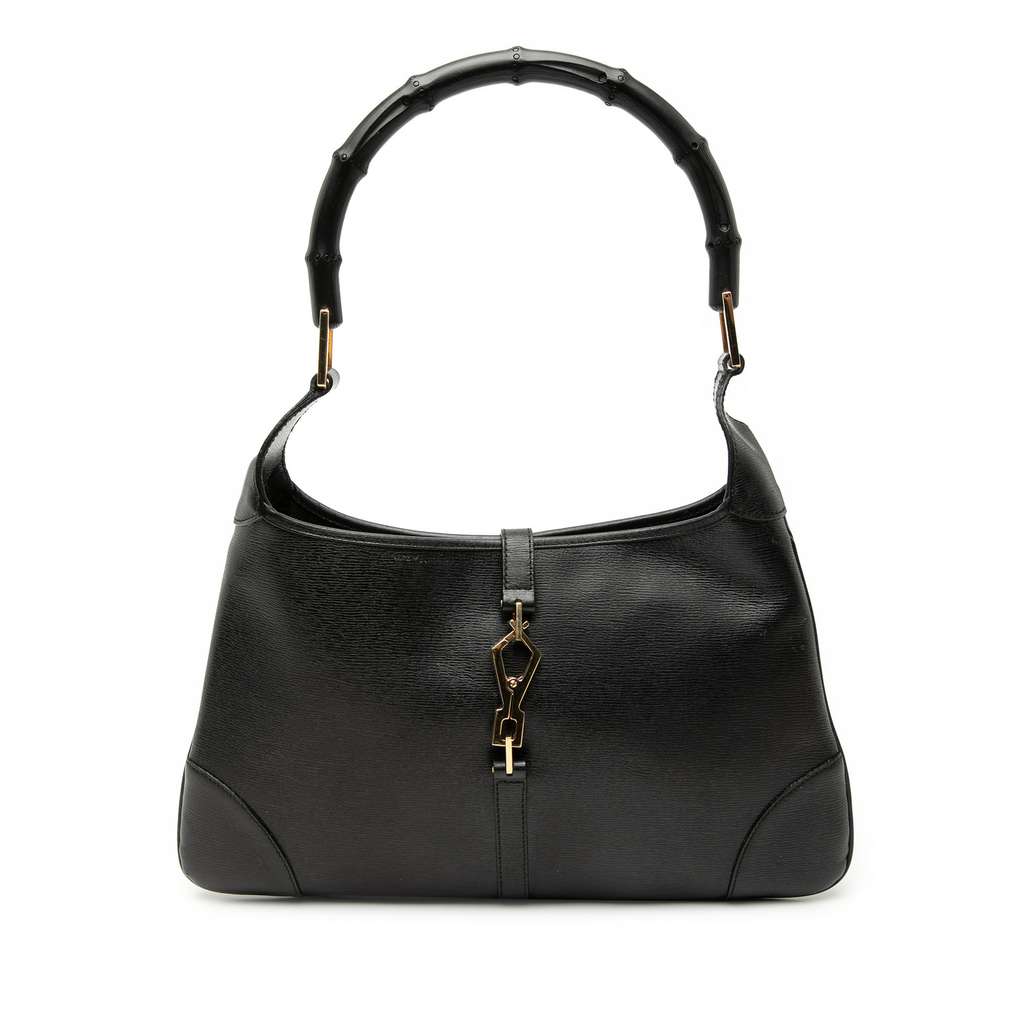 Gucci Calfskin Bamboo Jackie Hobo Black Large Leather