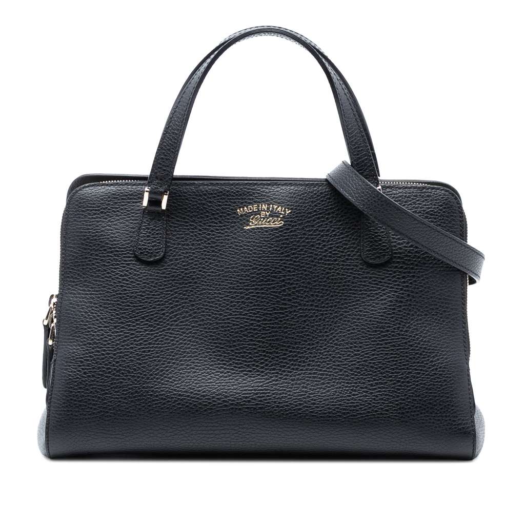The Swing features a leather body, flat leather top handles, a detachable flat leather shoulder strap, an open top with lobster claw clasp closure, an interior zip compartment, and interior zip and slip pockets.