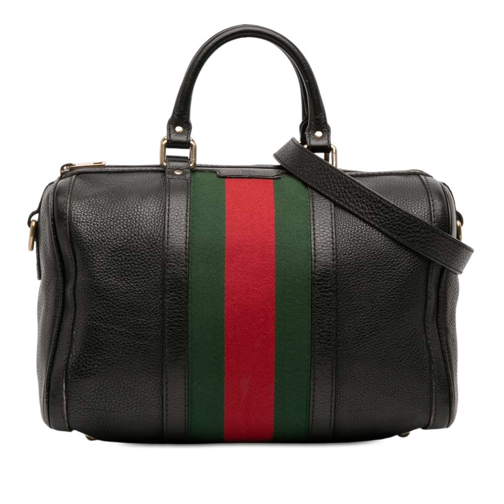 Gucci Calfskin Web Joy Boston Bag Black Large Leather