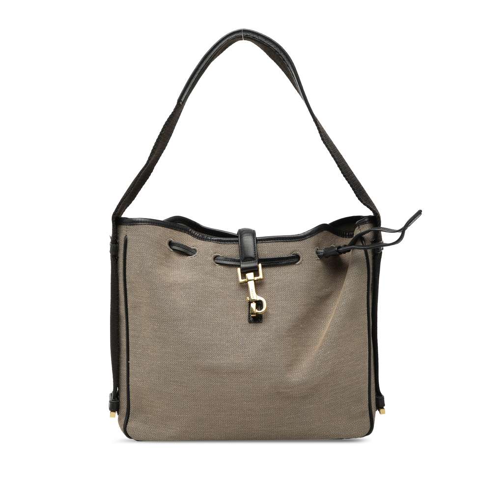 Gucci Canvas Jackie Drawstring Shoulder Bag Beige Medium Can