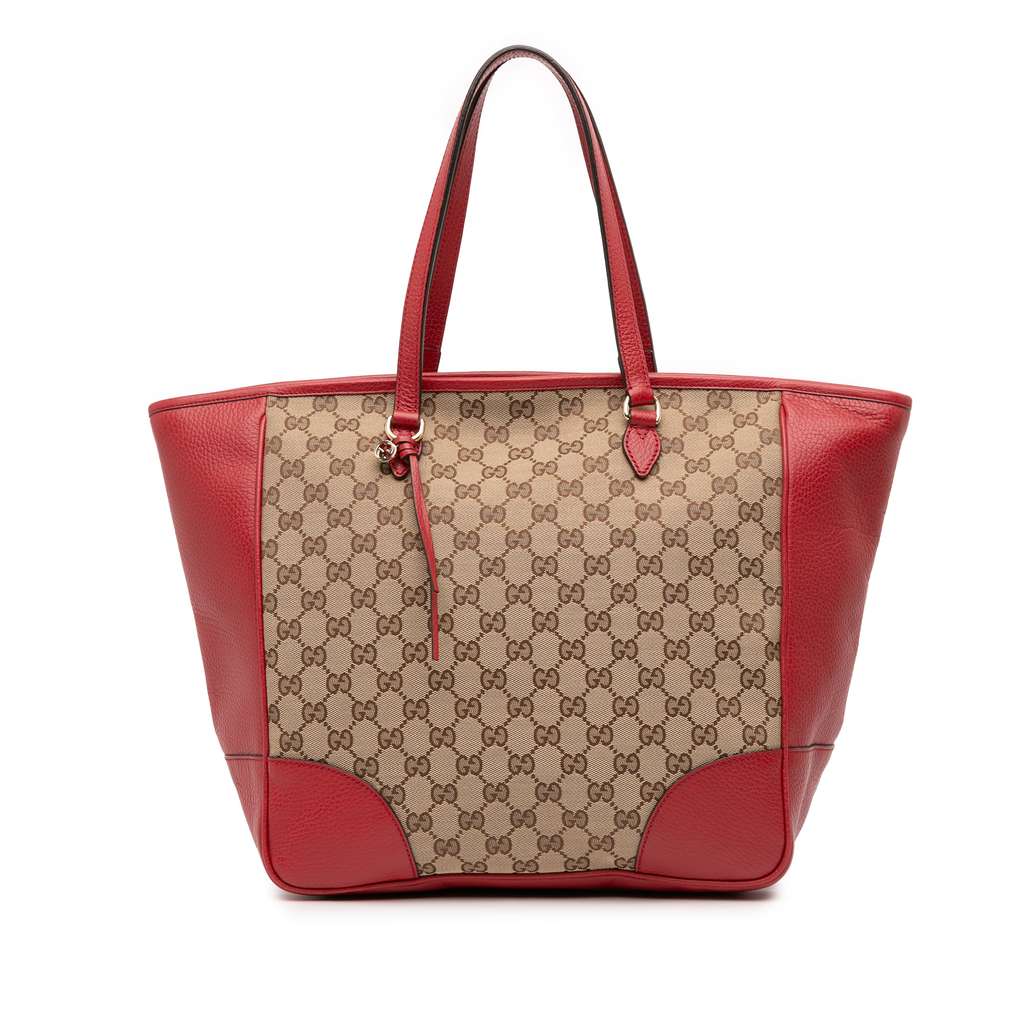 The Bree tote bag features a canvas body with leather trim, flat leather handles, a top zip closure, and interior zip and slip pockets.