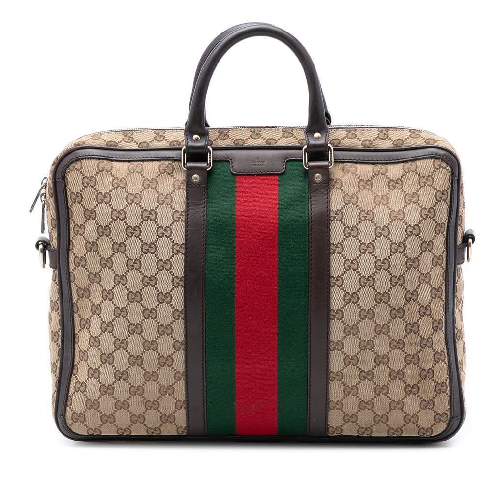 Gucci GG Canvas Web Briefcase Brown X-Large Canvas