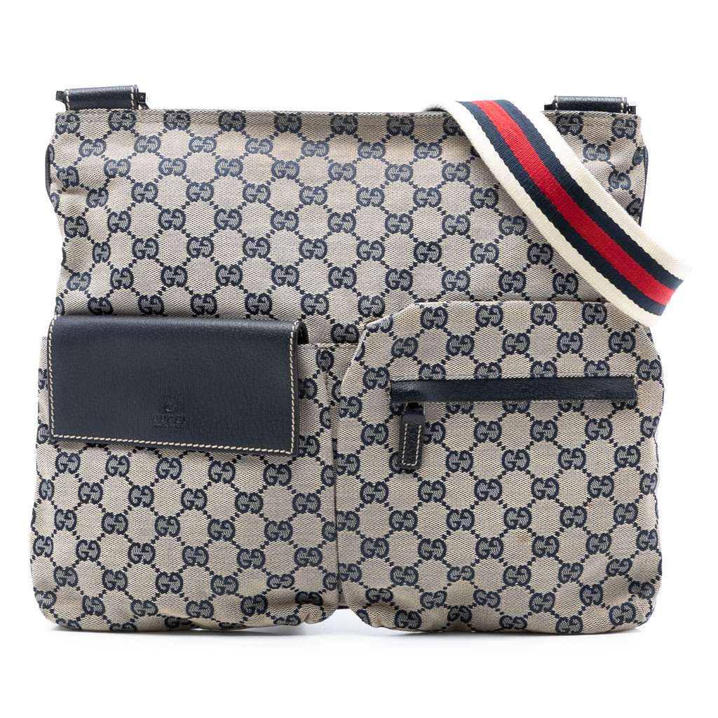 This crossbody bag features a canvas body, exterior front zip and flap pocket, a flat strap, a top zip closure, and interior zip and slip pockets.