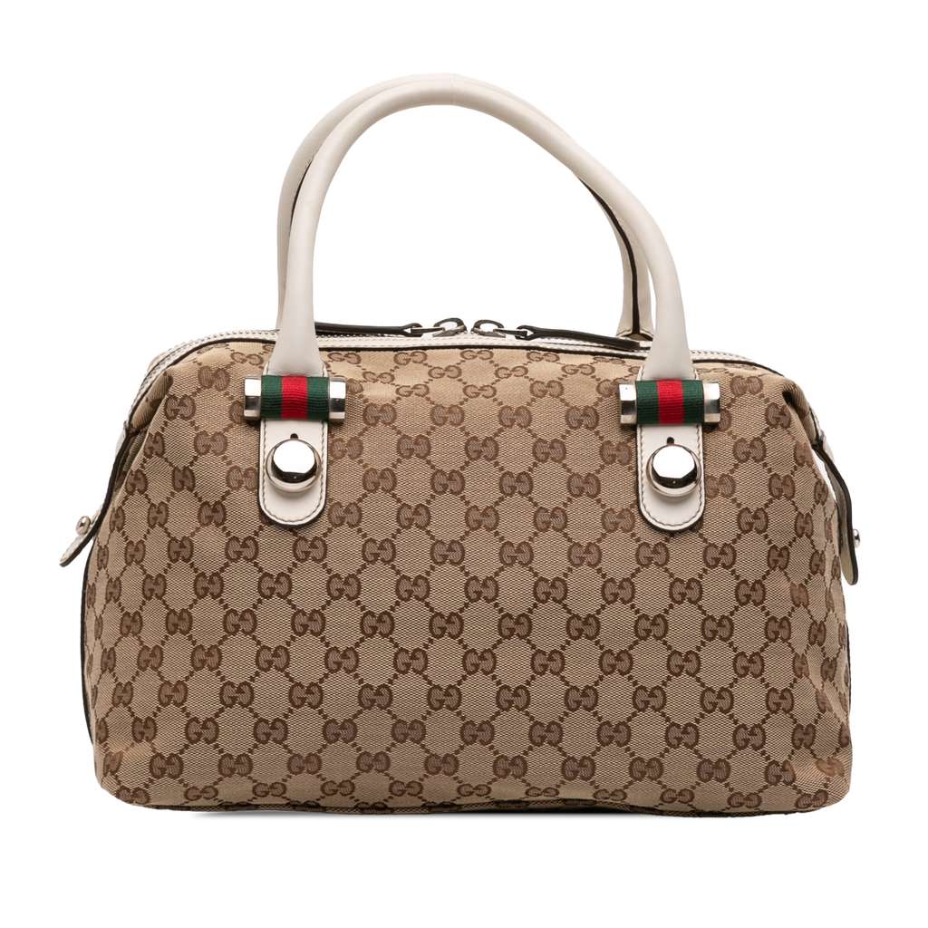 Gucci GG Canvas Web Match Ball Boston Bag Brown Large Canvas