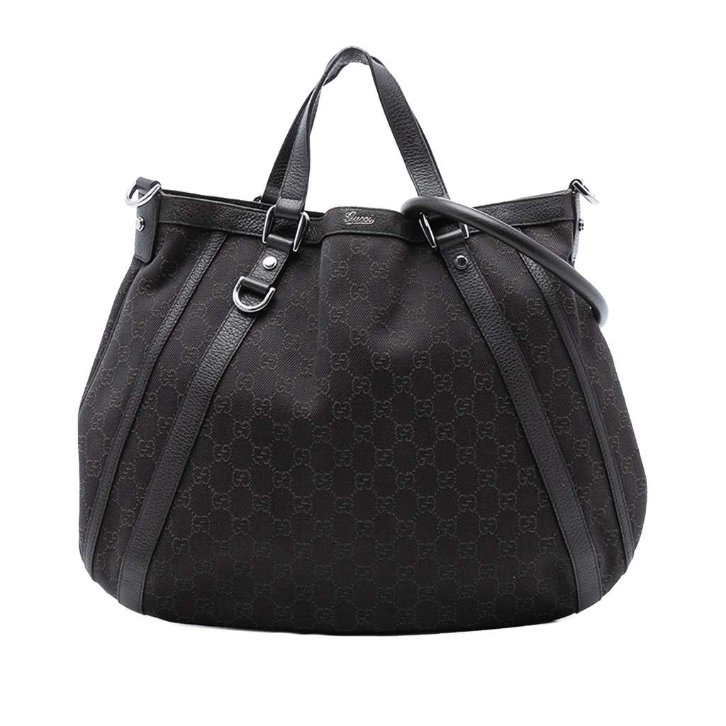 Gucci GG Denim Abbey D Ring Satchel Brown X-Large Denim