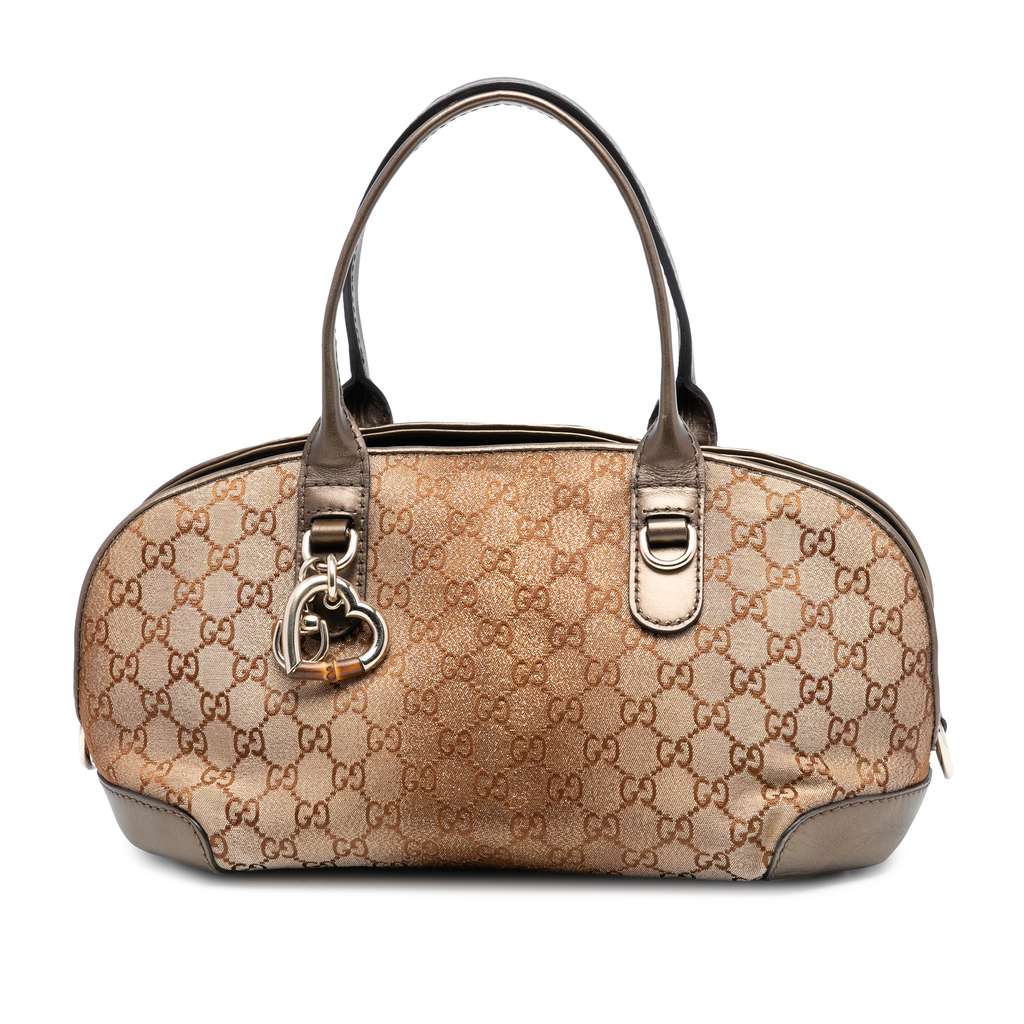 Gucci GG Lurex Heart Bit Satchel Brown Large Canvas