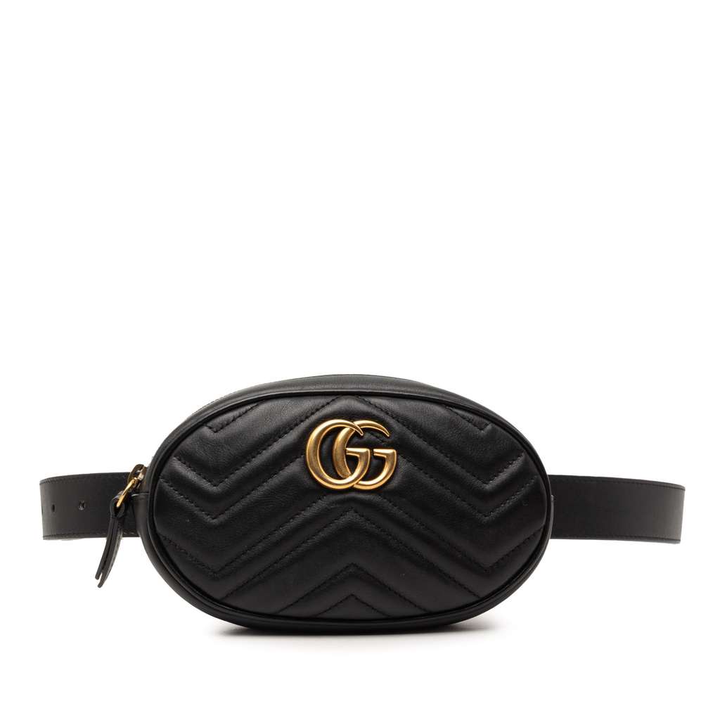 Gucci GG Marmont Matelasse Leather Belt Bag Black Mini Leath