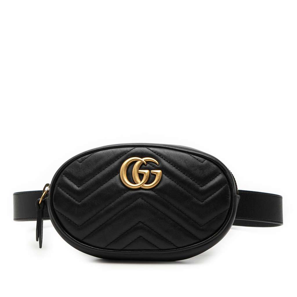Gucci GG Marmont Matelasse Leather Belt Bag Black Mini Leath