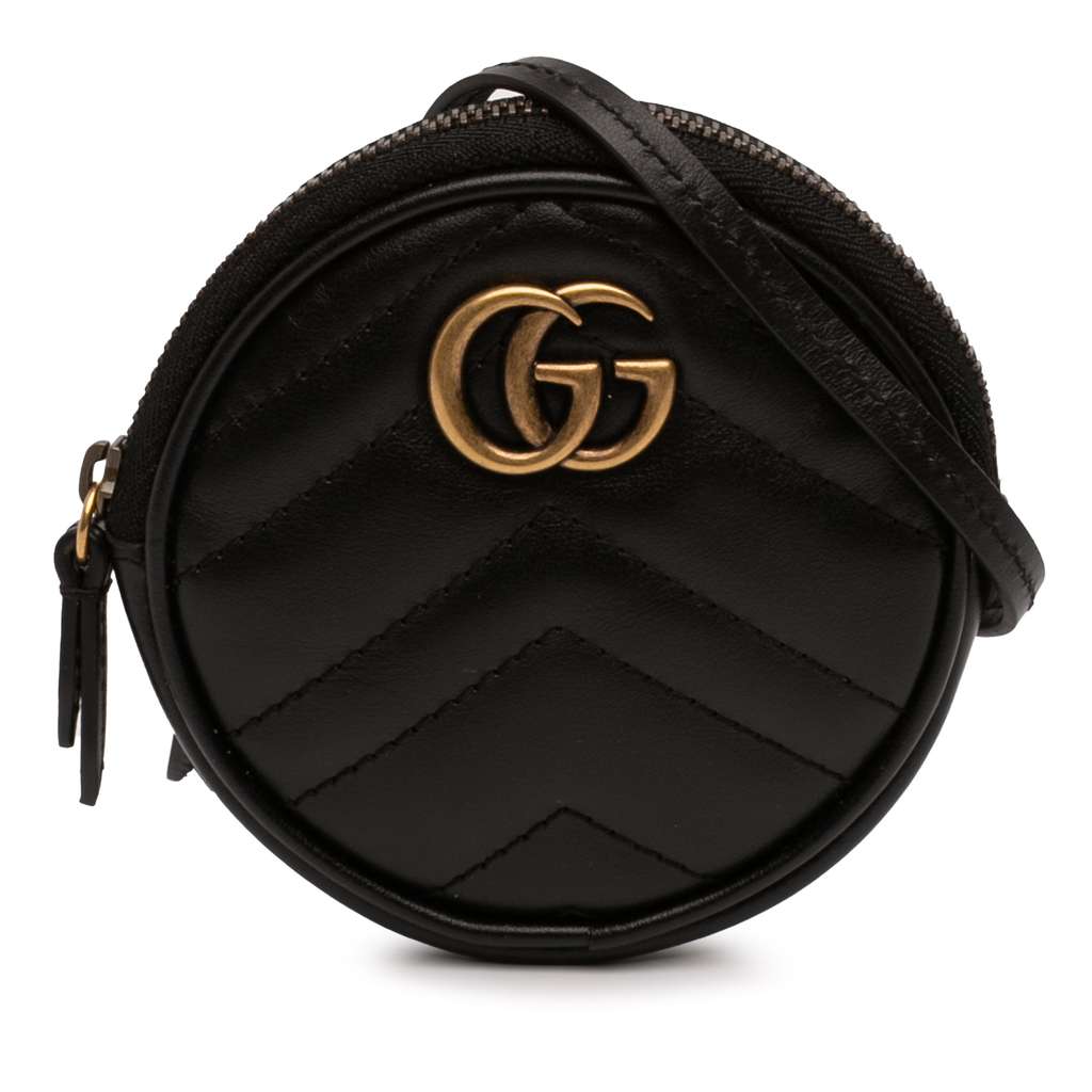 Gucci GG Marmont Matelasse Leather Round Coin Purse on Strap
