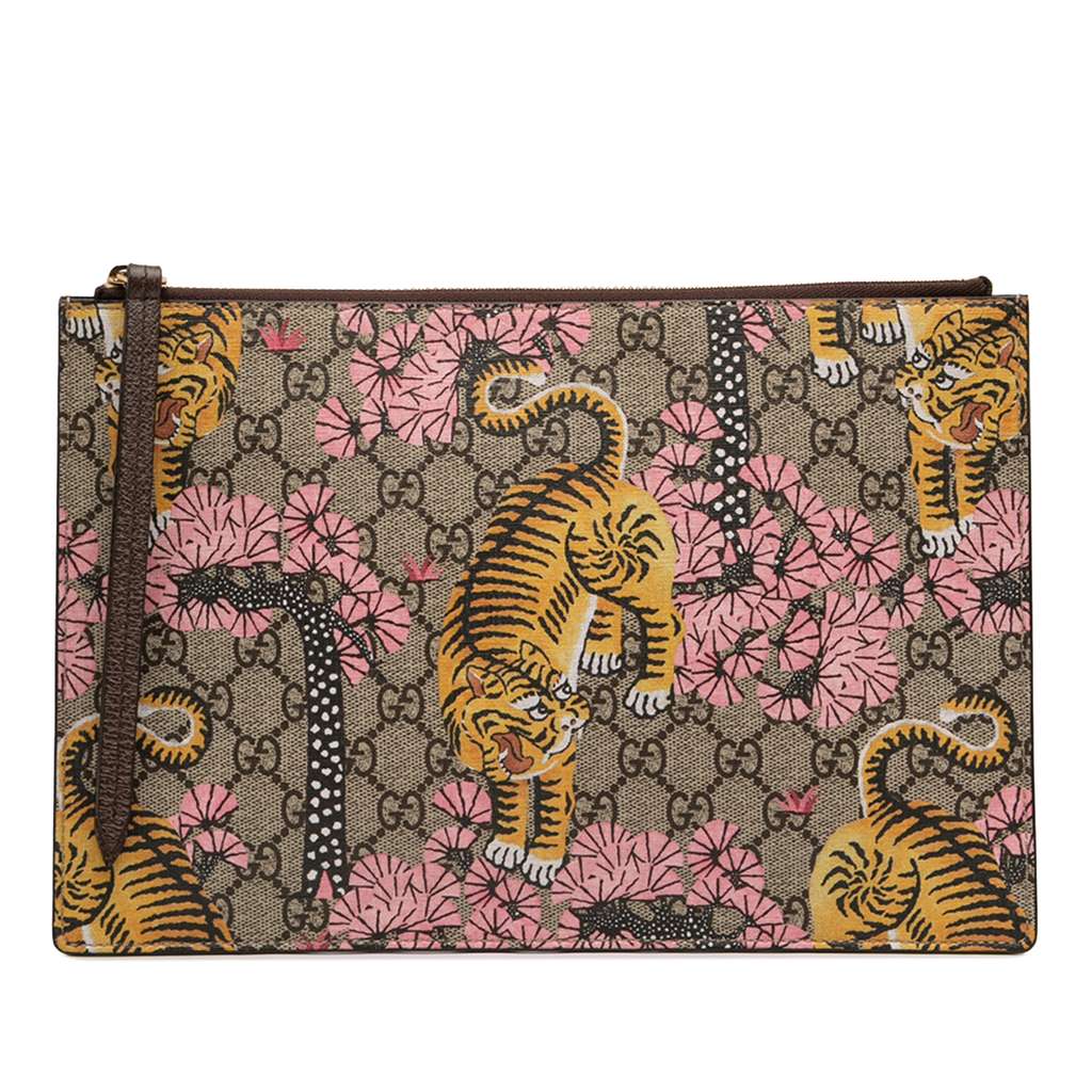 Gucci GG Supreme Bengal Clutch Beige Large | Pre-Loved Luxur