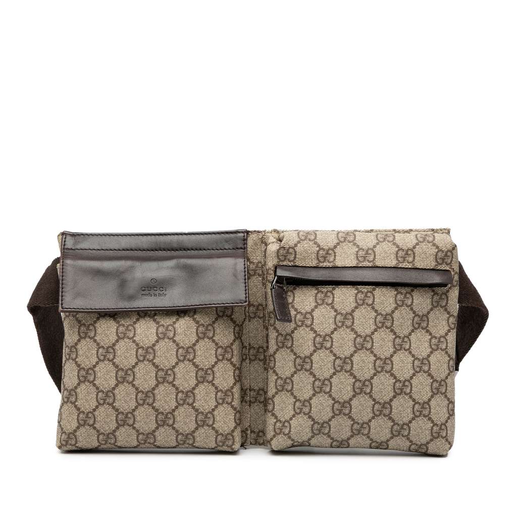 Gucci GG Supreme Double Pocket Belt Bag Brown Large Canvas