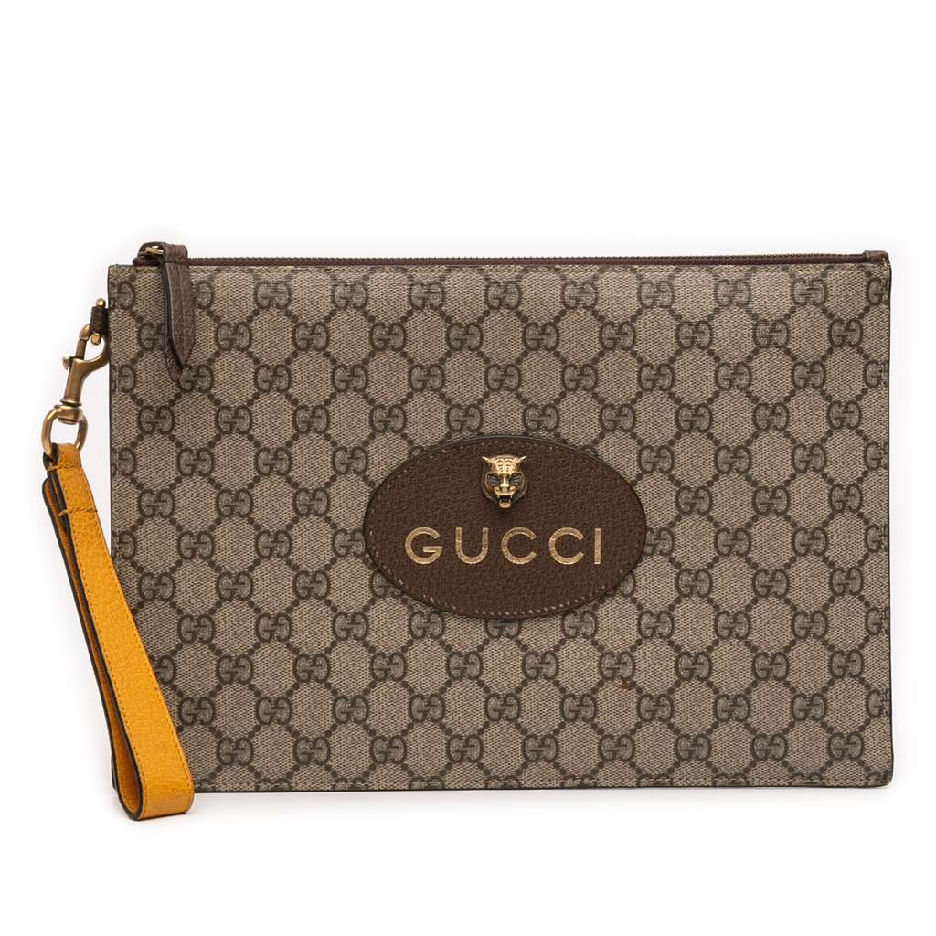 Gucci GG Supreme Neo Vintage Clutch Brown Large Canvas
