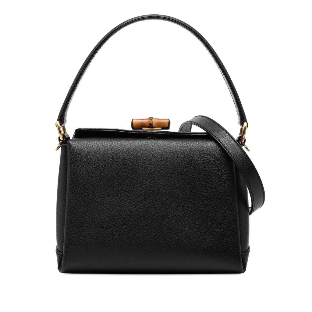 Gucci Grained Calfskin Bamboo Satchel Black Small Leather