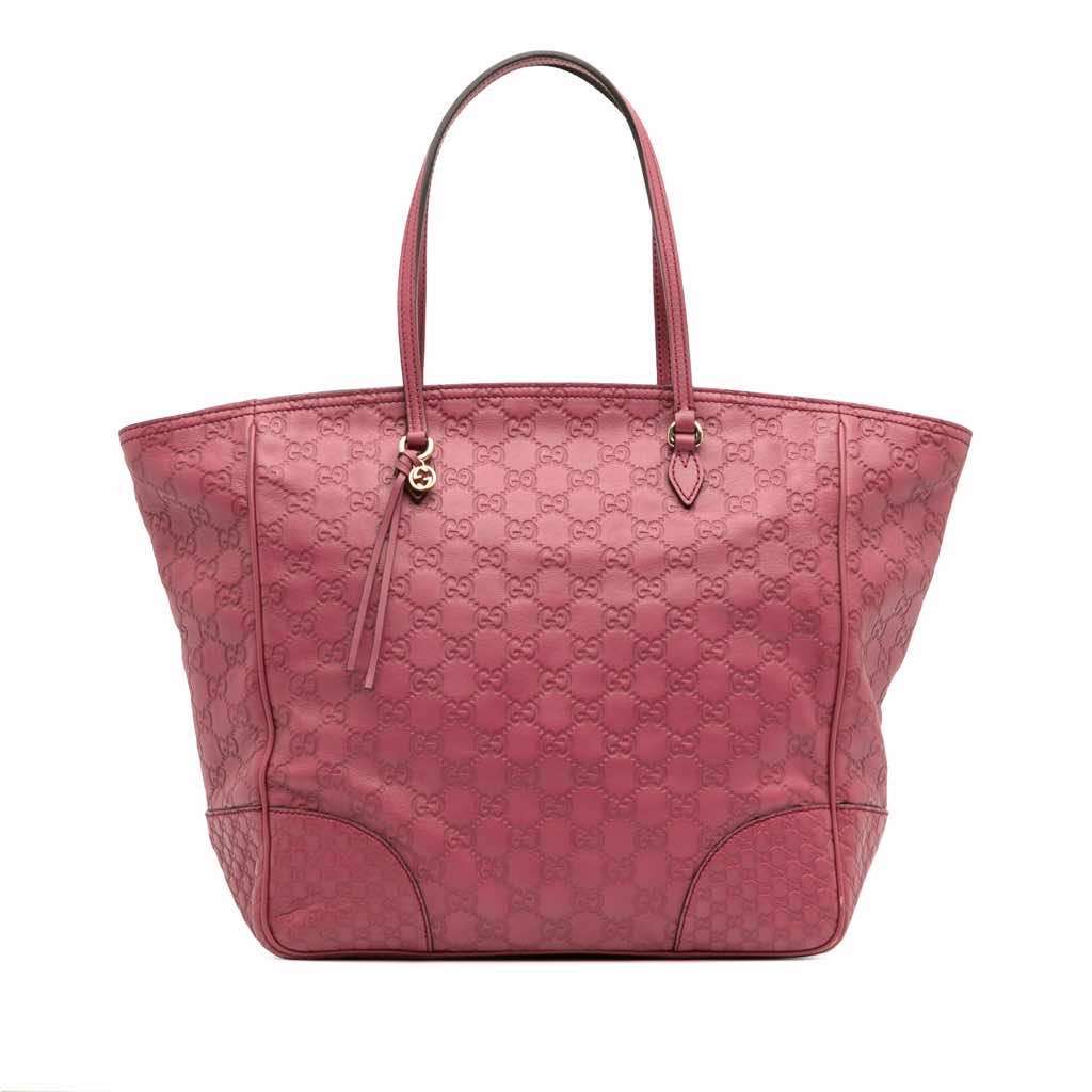 This tote bag features an embossed leather body, a flat leather trim handles, a top zip closure, and interior zip and slip pockets.
