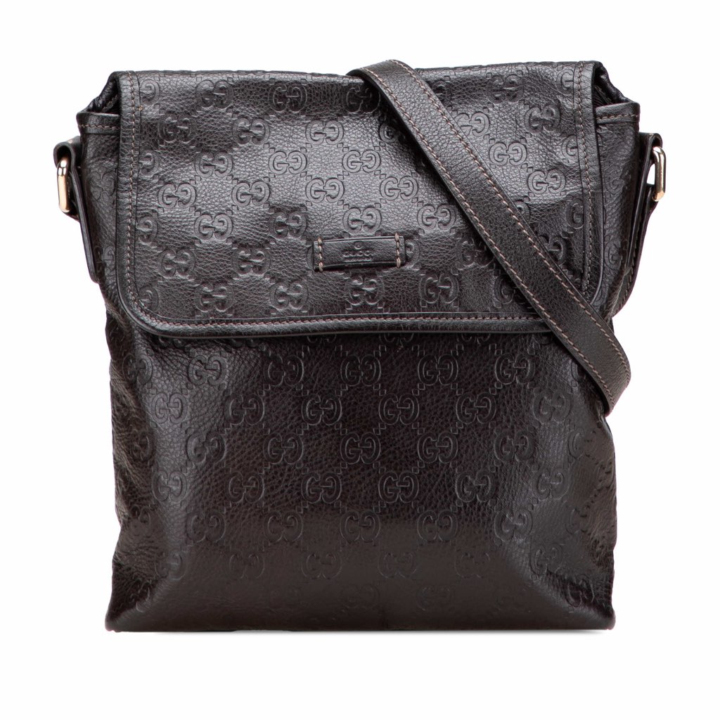 This crossbody bag features a leather body, an adjustable flat shoulder strap, a front flap with magnetic snap closure, and an interior zip pocket.