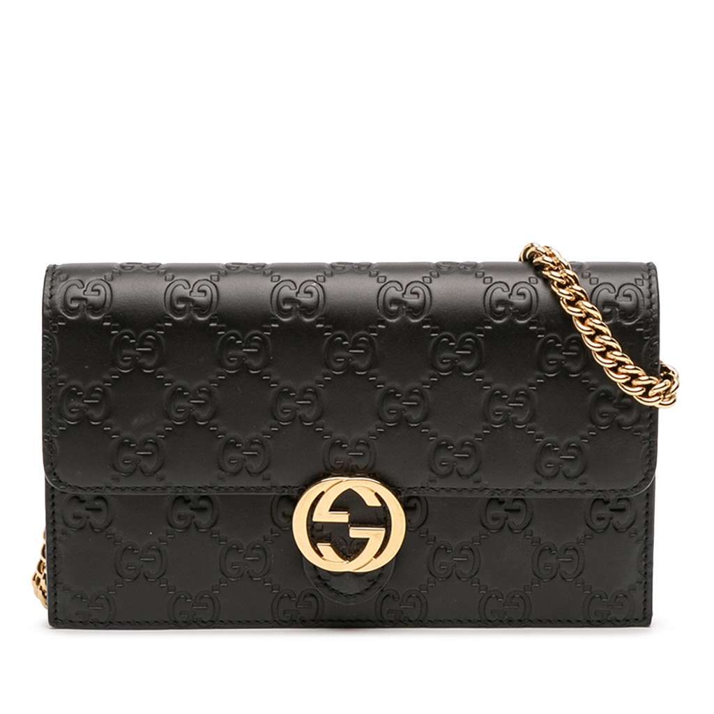Gucci Guccissima Interlocking G Wallet On Chain Black Mini L
