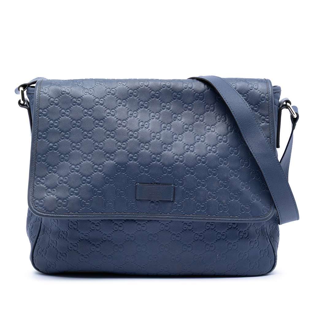 Gucci Guccissima Messenger Bag Blue X-Large Leather