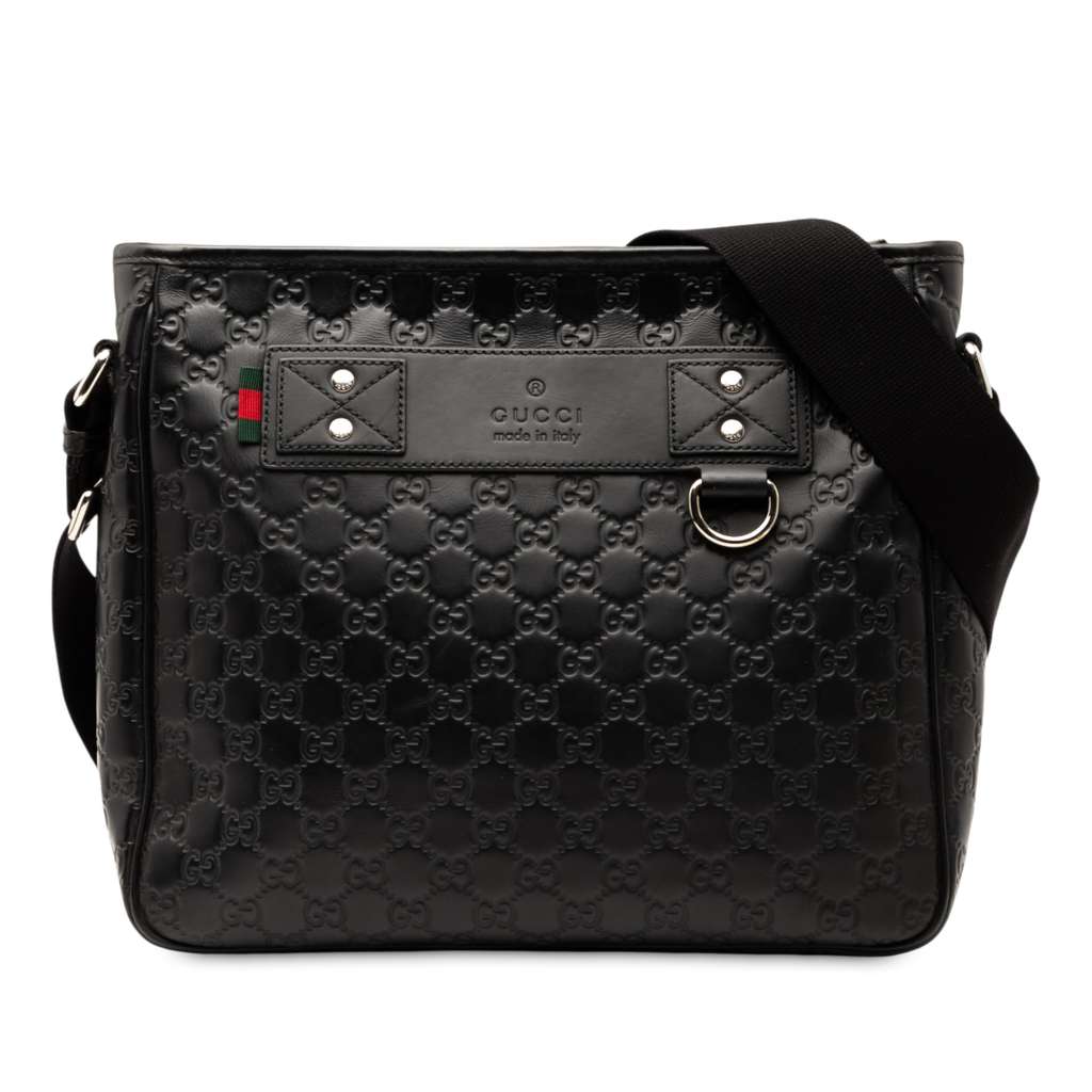 This crossbody bag features an embossed leather body, an adjustable flat strap, a top zip closure, an exterior back zip pocket, and interior zip and slip pockets.