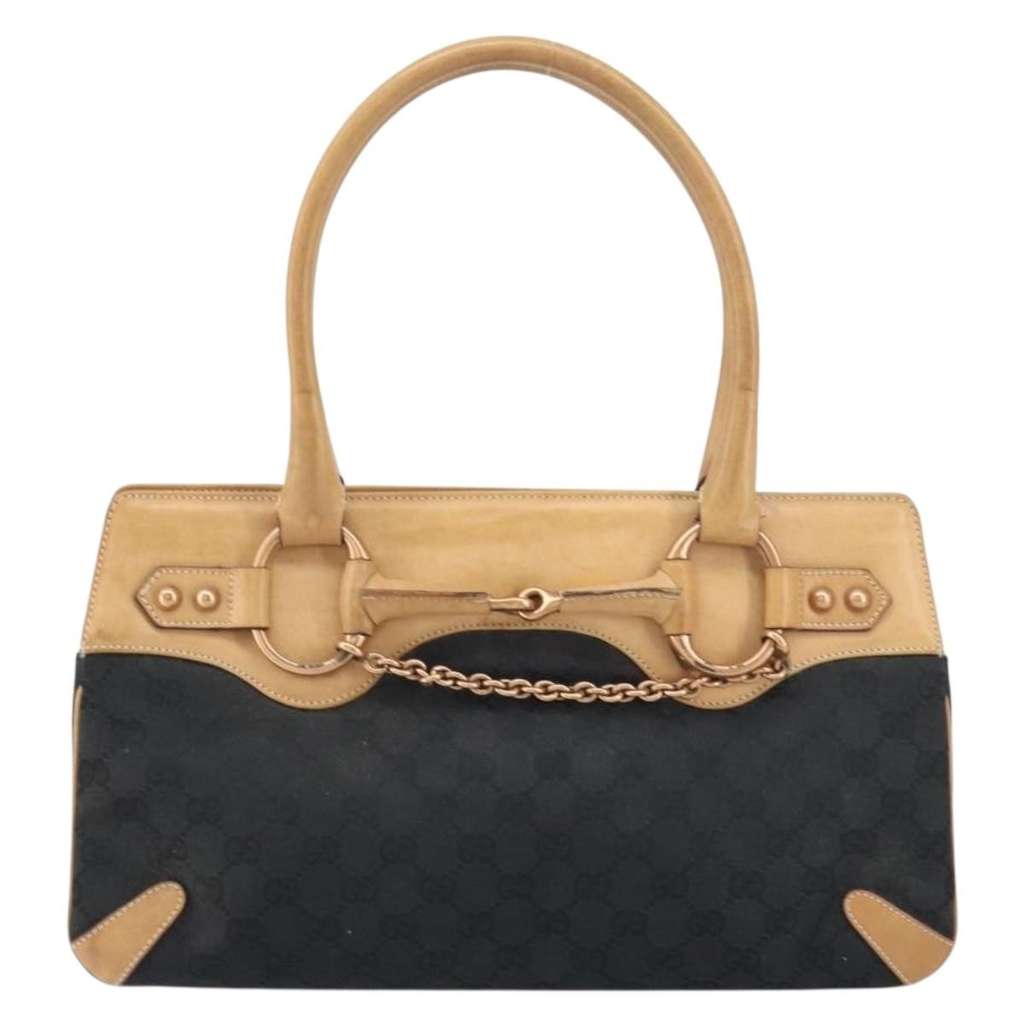 Gucci Horsebit Bracket Tote Black X-Large Canvas | Pre-Loved