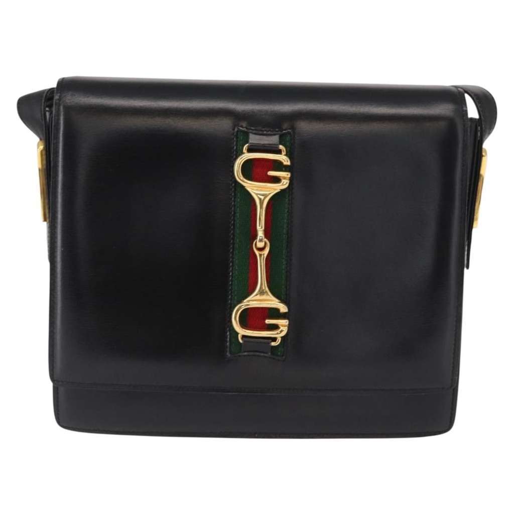 Gucci Horsebit Web Shoulder Bag Black Small Leather