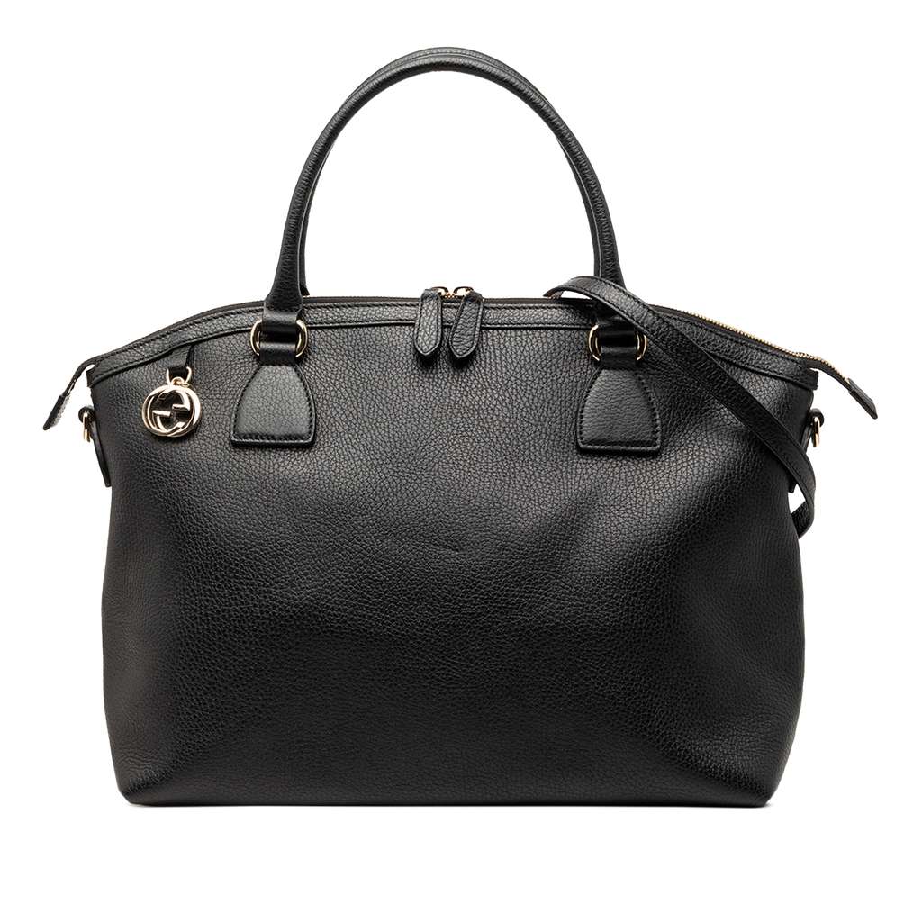 Gucci Large Dollar Calfskin GG Charm Dome Satchel Black X-La