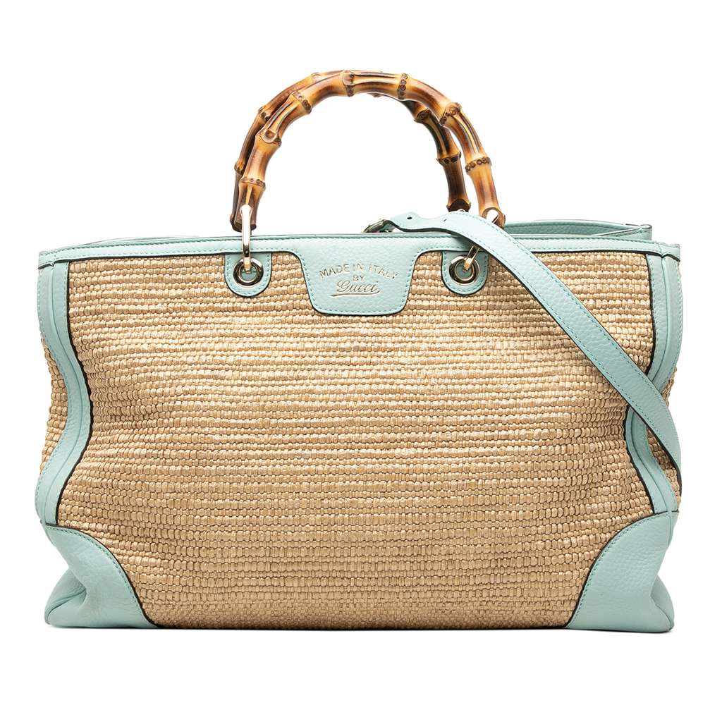 Gucci Large Raffia Bamboo Shopper Satchel Brown X-Large