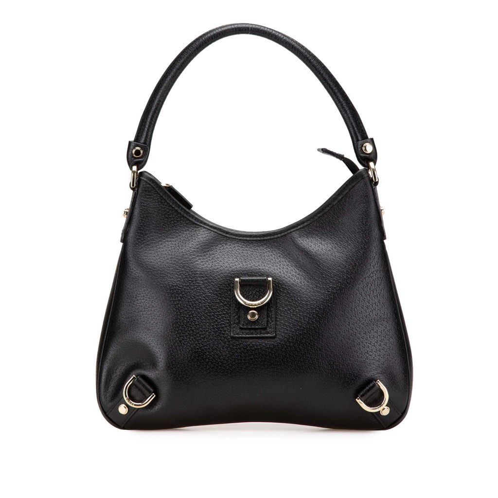 The Abbey D-Ring shoulder bag features a leather body, a rolled leather handle, a top zip closure, and interior zip and slip pockets.
