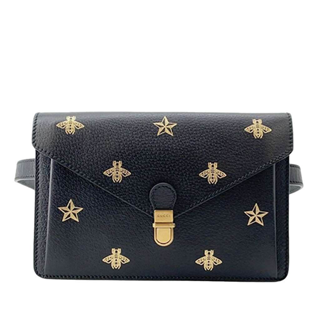 Gucci Leather Bee Star Belt Bag Black Small Leather