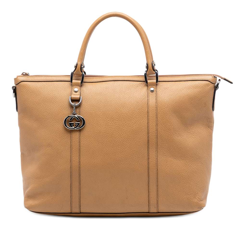 Gucci Leather GG Charm Satchel Brown X-Large Leather