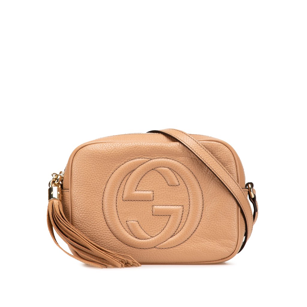 The Soho crossbody features a leather body, a flat leather strap, a top zip closure with a leather tassel pull, and interior slip pockets.
