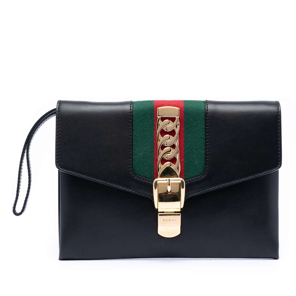 Gucci Leather Sylvie Clutch Black Medium Leather | Pre-Owned
