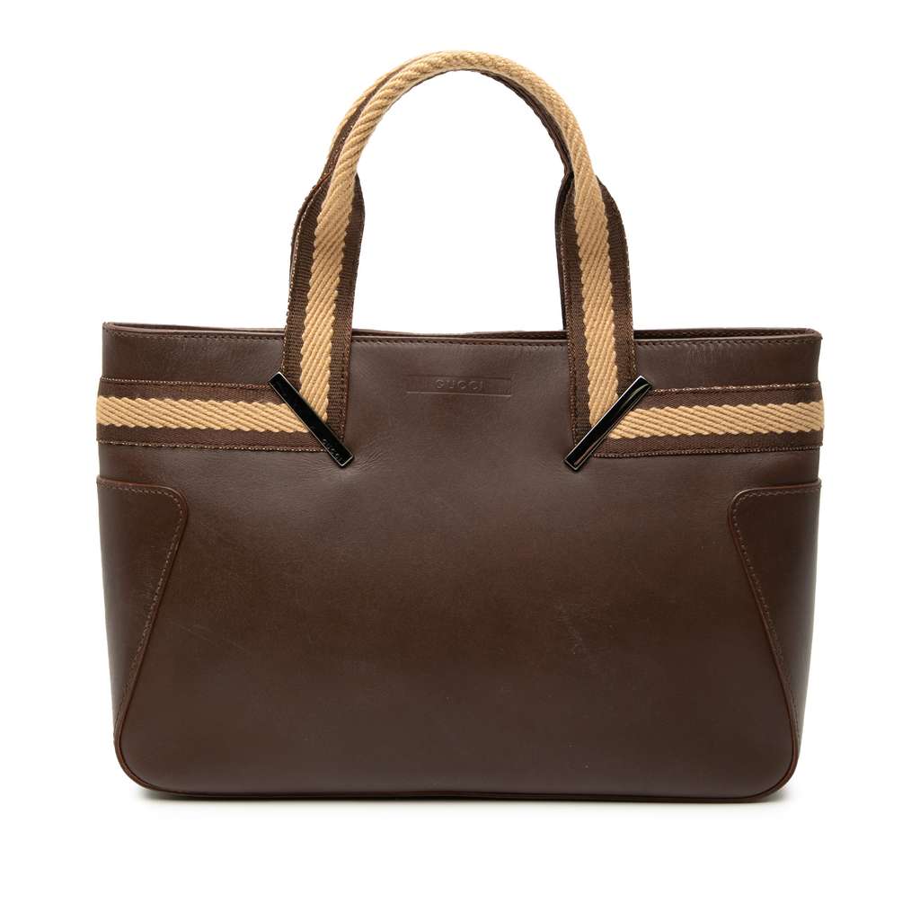 Gucci Leather Web Handbag Brown Medium Leather | Pre-Loved L