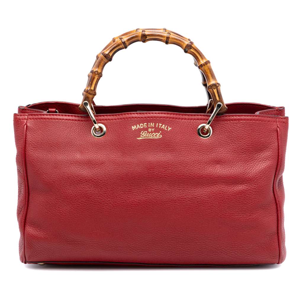 Gucci Medium Calfskin Bamboo Shopper Satchel Red Large Leath