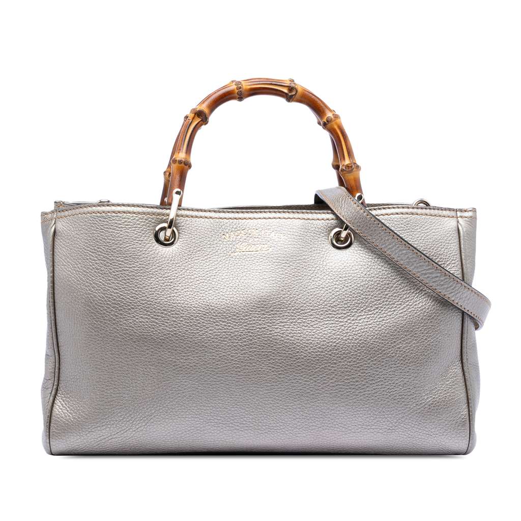 Gucci Medium Calfskin Bamboo Shopper Satchel Gold Large Leat